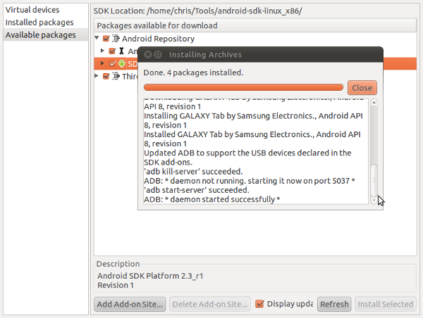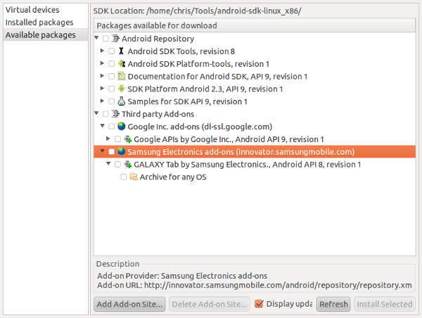 Everyone new to Android can simply follow the standard Android SDK installation procedure. Those of us who already have an Android SDK running need to perform the following steps: